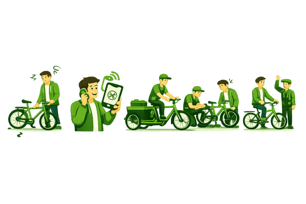Qu’il s’agisse d’un parc de vélos pour les salariés, de vélos mis à disposition du public ou de vélos destinés à l’accueil touristique, FLEXIVELO propose des interventions ciblées : entretien régulier, remise en état, réparations courantes et vérifications de sécurité. Cette approche permet de maintenir les vélos en bon état d’usage tout au long de l’année, sans nécessité de transport vers un atelier.